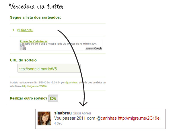 2 Via twitter, twitando a frase com o link “Vou passar 2011 com @carinhas http://migre.me/2G19e”
