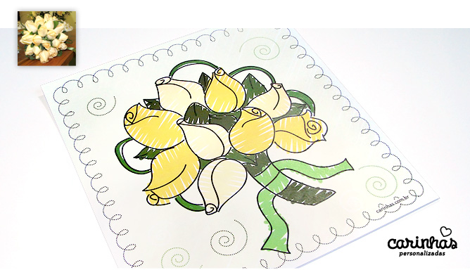 Você sabe que também fazemos desenhos de buquês, né? Pois bem, a Juliana do post anterior também sabe e não perdeu tempo! Encomendou seu buquê ilustrado lindo com botões de rosa amarelas!