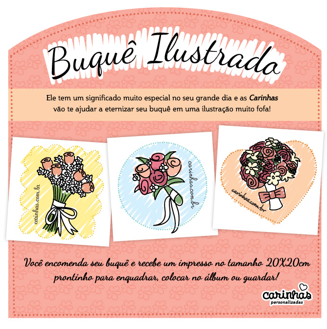 Mais uma fofura entra para a família Carinhas: é o Buquê Ilustrado! Ele te acompanha em um dos momentos mais emocionantes da sua vida e também é inesquecível! Por isso, ganhou um destaque especial no nosso mundo ilustrado!