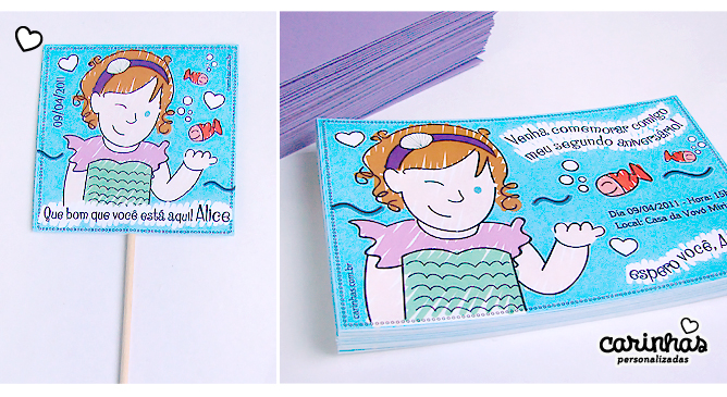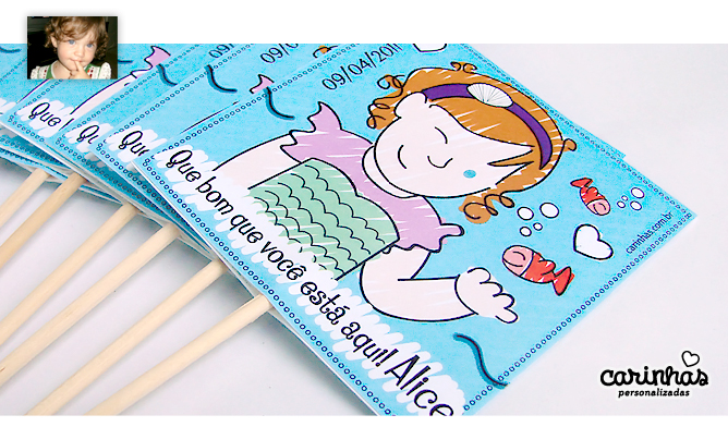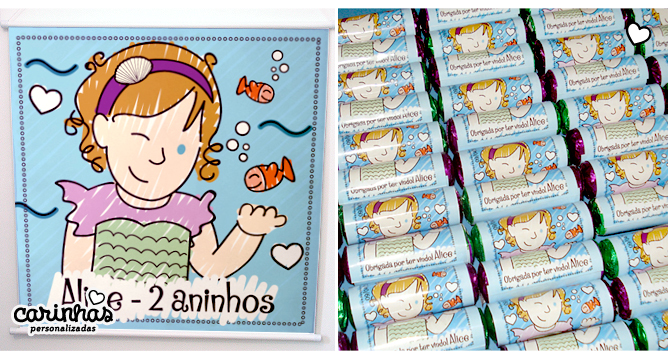 Lá em 2009 nós preparamos um álbum para receber a Alice! Ela chegou lá na cidade de Lorena, interior de São Paulo (é a cidade Natal da minha mãe, sabiam? Já passei lindos momentos por lá!) para alegrar a vida da Lívia e do papai linda e fofa e já está completando 2 aninhos! Ela adora peixes e princesas… adivinha no que deu essa Carinha? Uma linda sereia!