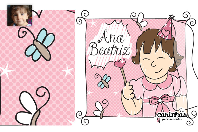 Na primeira encomenda, a Fernanda contou que a Ana Beatriz ficou abanando a mãozinha para o monitor quando se viu de Joaninha! Desta vez a Fernanda viu a fadinha e disse: “Aprovadíssimo até mesmo por ela!!!!!” Own!
