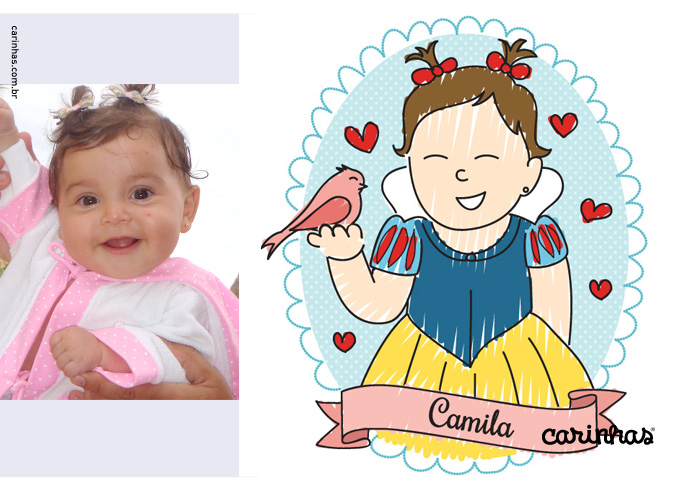 Camila ganhou uma Carinha com direito a passarinho bem fofo e cor de rosa e nós ganhamos um comentário querido da Rosane quando viu o desenho: “Amei! Não vejo a hora de entregar!”