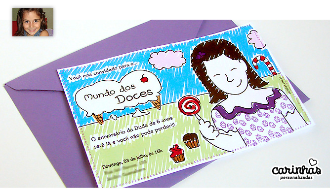 Nuvens de algodão doce, arbustos de cupcake e brigadeiro, placas de sorvete e pirulitos à vontade! Esse foi o convite que a Carinha da Duda fez aos seus amigos: um dia no mundo dos doces! :D