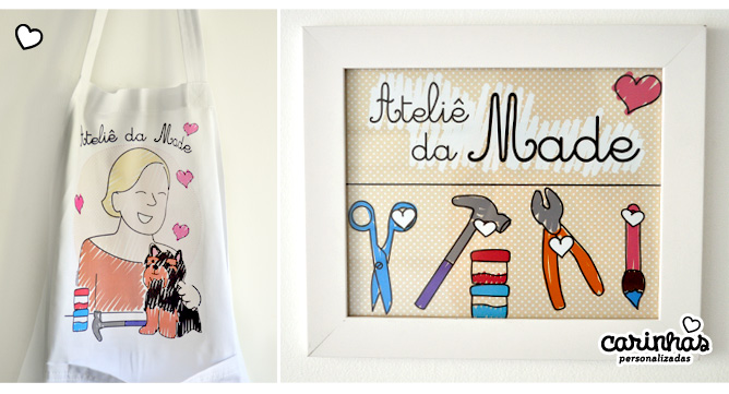 No avental, os dois juntos e algumas ferramentas que a Made usa para fazer biscuit, fuxico, pintura em madeira, etc! São muitas habilidades! :)