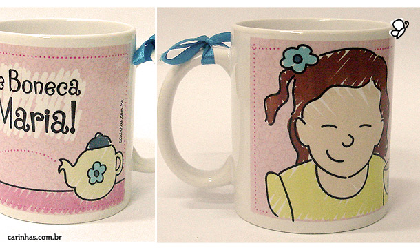 As encomendas foram tags pequenas, mas o desenho ficou tão fofuxo que a mamãe resolveu encomendar uma caneca pra Maria!