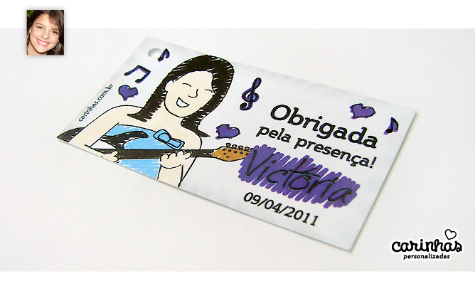 A Victoria é carioca e fez 15 anos esse ano! Sabem o que ela escolheu para acompanhá-la na sua Carinha? Uma guitarra e muita música! Eu amei essa idéia!