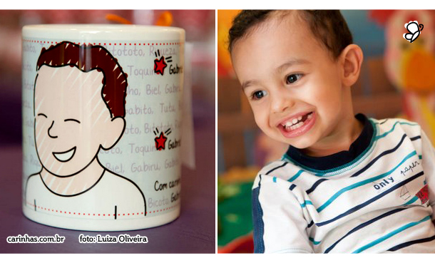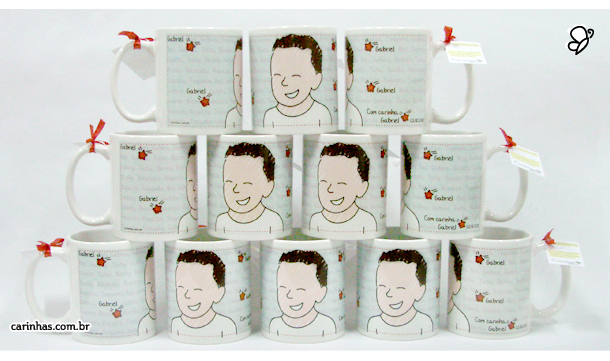 As lembrancinhas para família foram canecas com a Carinha do Gabriel! Quem resiste à esse sorriso?