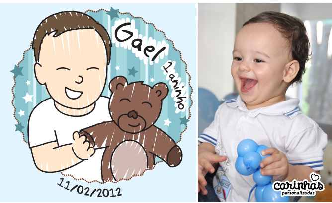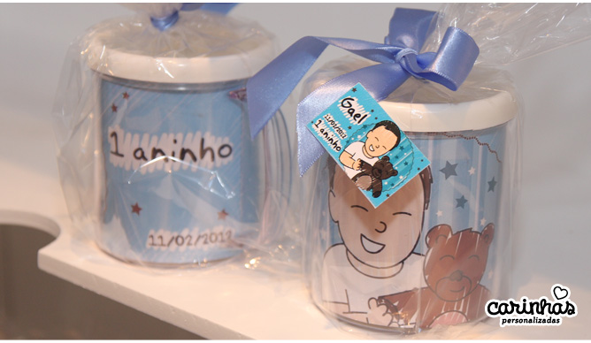 Fizemos a Carinha desse lindo com sorriso cativante e a Camila providenciou os mimos! Ela comentou que não esperava que os potinhos com a Carinha dele fossem acabar tão depressa, os convidados adoraram! :D Por isso, ela completou “Sempre que vou na casa de alguém tem a carinha do Gael… fico muito feliz!” A gente também amou saber, Camila!