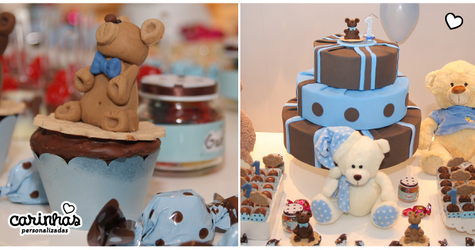 Olha o ursinho no cucpake, muito fofo! O potinho com Carinhas está bem ali atrás no detalhe.
