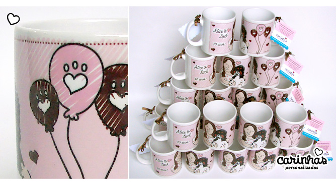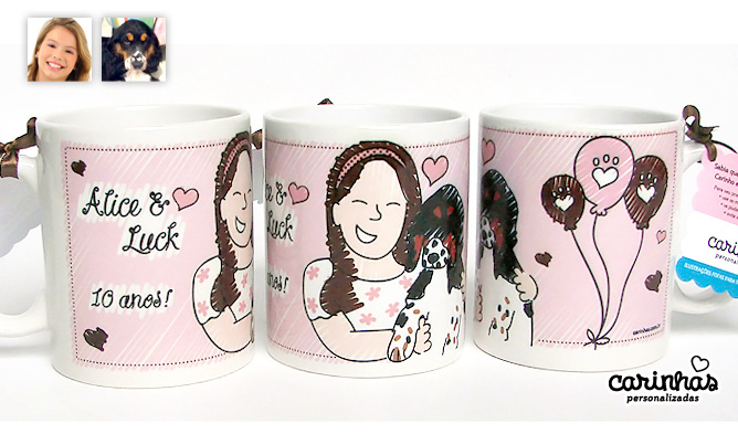 Mais uma lindinha com seu cachorrinho chegando por aqui hoje! Dessa vez, o tema da festa foi cachorrinho e as Carinhas da Alice e do Luck foram as estrelas! O marrom e rosa que a gente adora foram as cores da decoração escolhidas pela Alice e sua mamãe Cláudia e a festa aconteceu no Rio de Janeiro! As canecas com Carinhas não faltaram!
