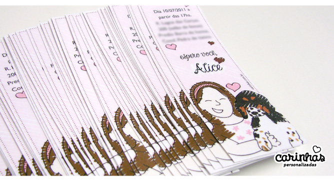 Estou curtindo essa moda de usar o marcador de livro como convite! Assim ele vira um presente também!