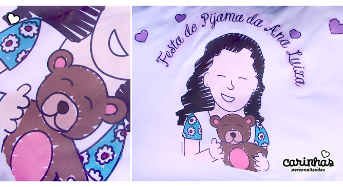 Que tal uma festa do pijama? É tão gostoso esse clima super à vontade com as amigas em casa, né? Foi assim a festa de aniversário de 8 anos da Ana Luiza, com a Carinha vestindo a mesma camisola que ela!