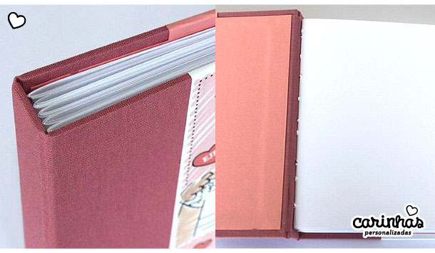 O álbum médio foi com folhas brancas e tecido lateral nesse rosa que eu A-M-O!