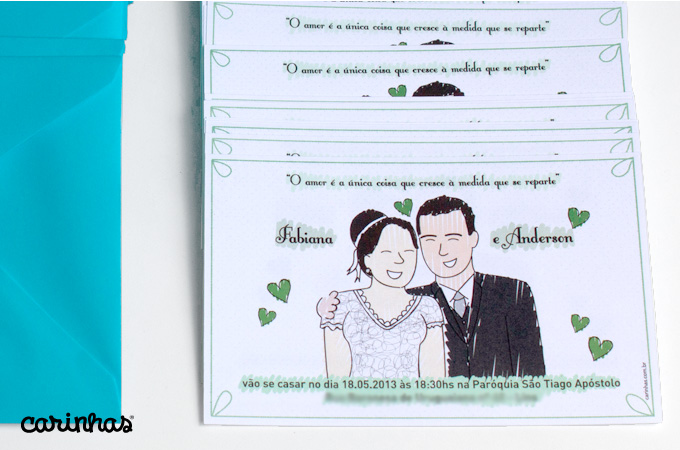 “O amor é a única coisa que cresce à medida que se reparte.” – Linda essa frase que a Fabiana e o Anderson escolheram para dar um toque no convite de casamento deles com as Carinhas!