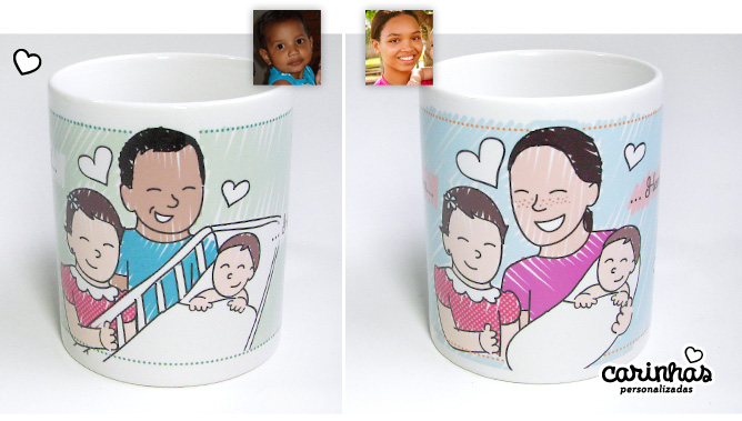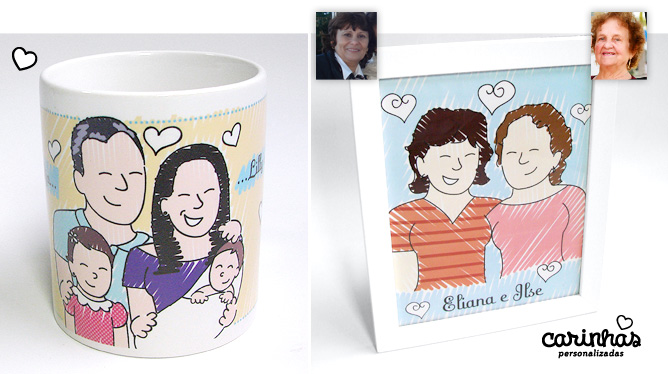 A família toda reunida apareceu em uma caneca. Mais pessoas queridas virando Carinhas: foram a Eliana e a Ilse, que aprareceram juntas em um quadrinho!
