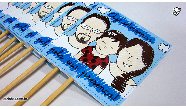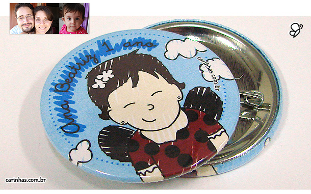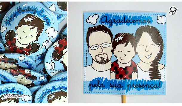 A festinha aconteceu em Belo Horizonte e os convidados ganharam bottons! A decoração ficou por conta dos palitinhos com Carinhas: