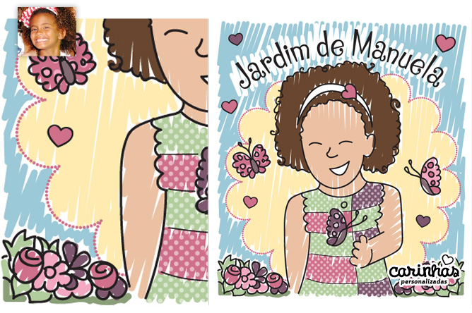 A Manuela é de Pernambuco, da cidade de Jaboatão dos Guararapes! Sua mamãe Louise encomendou uma Carinha com ela em um lindo jardim para comemorar seus 8 aninhos completos agora em fevereiro!
