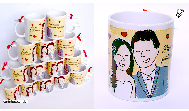 Começando por elas, as nossas queridinhas, as canecas! Que foram presentes para os padrinhos!