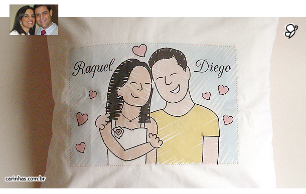 Surpresa para o aniversário de namoro? É com a gente mesmo… A Raquel concorda e encomendou as Carinhas na almofada grande para abraçar junto com o Diego e comemorar 1 ano de namoro na cidade maravilhosa!