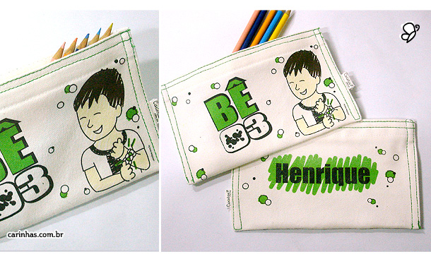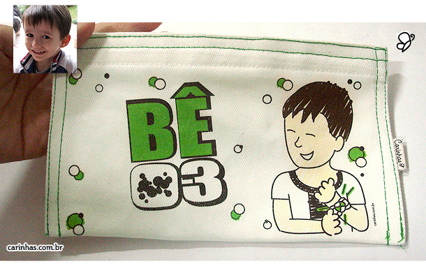 Em um dos lados do estojo a Carinha, e, do outro, o nome do amiguinho! Ou seja, um presente duplamente personalizado!