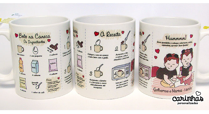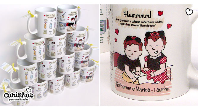 Carinha misturada com receita de bolo? A gente topa porque adoramos misturar e inventar! Olha onde os pequenos foram parar! Na caneca com receita, que foi presente para os convidados!