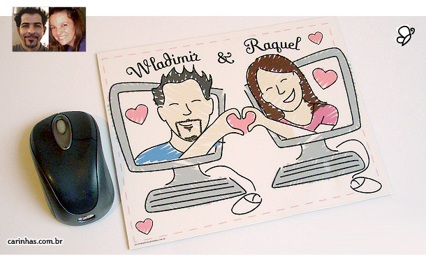 Esse post é dedicado a todos que namoram via internet, ao que se conheceram via internet, aos que ficam na internet trabalhando um do lado do outro e mesmo assim mandam mensagens (oi, Rapha!) e também a Raquel e o Wladimir, de Santos, eles encomendaram um mouse pad com Carinhas que expressa super bem romances online!