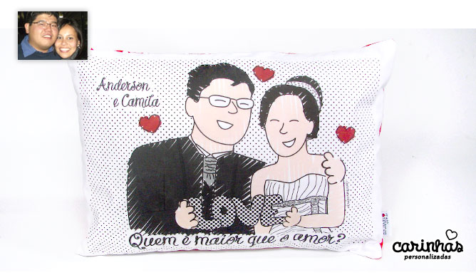 Começando pela almofada pequena de presente para o casal. Quando a Camila viu o desenho, ela disse: “Sabia que ia ficar lindo!!!” Own! :)