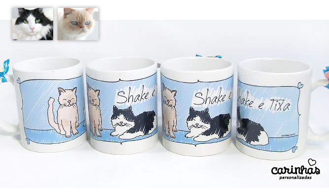 Foi para homenagear esses dois encantadores (que olhos!) e também para ilustrar seu blog que ela encomendou as Carinhas deles em canecas: