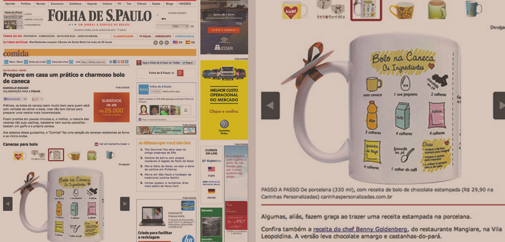 Que alegria ver uma seleção de canecas da Folha de São Paulo contar com a nossa caneca com receita de bolo! Esse produto é um queridinho por aqui desde 2009 e é campeão para presentear no chá de panela: uma receita e um presente em um só produto. Obrigada, Danielle! ;)