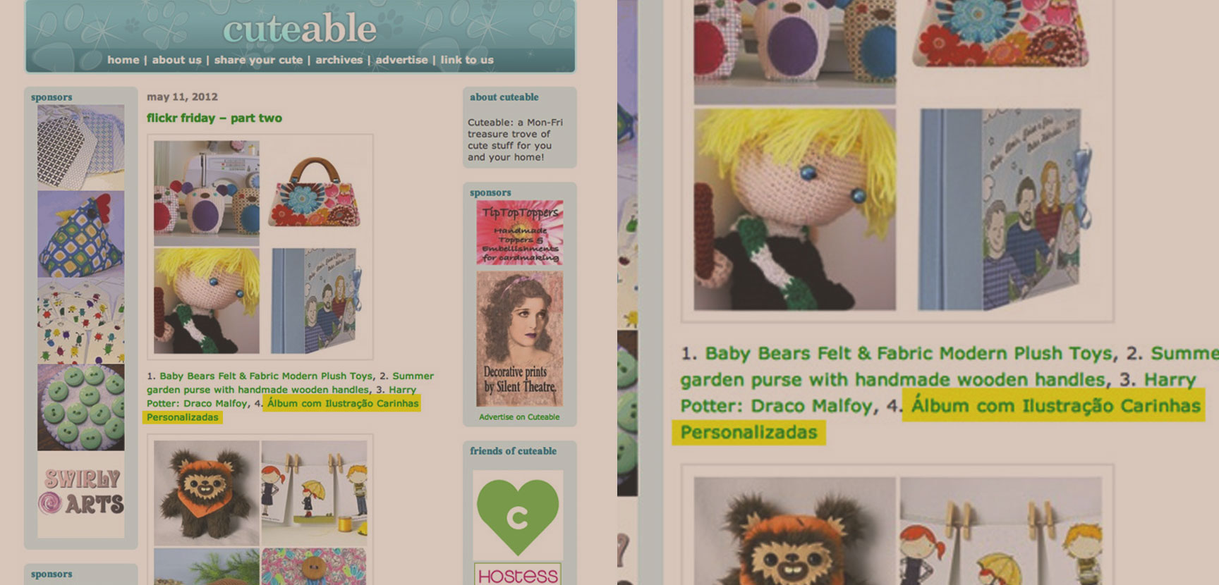 Somos super fãs do blog Cuteable! Que surpresa linda ver um álbum com nosso desenho na seleção de fofuras do último flickr friday!