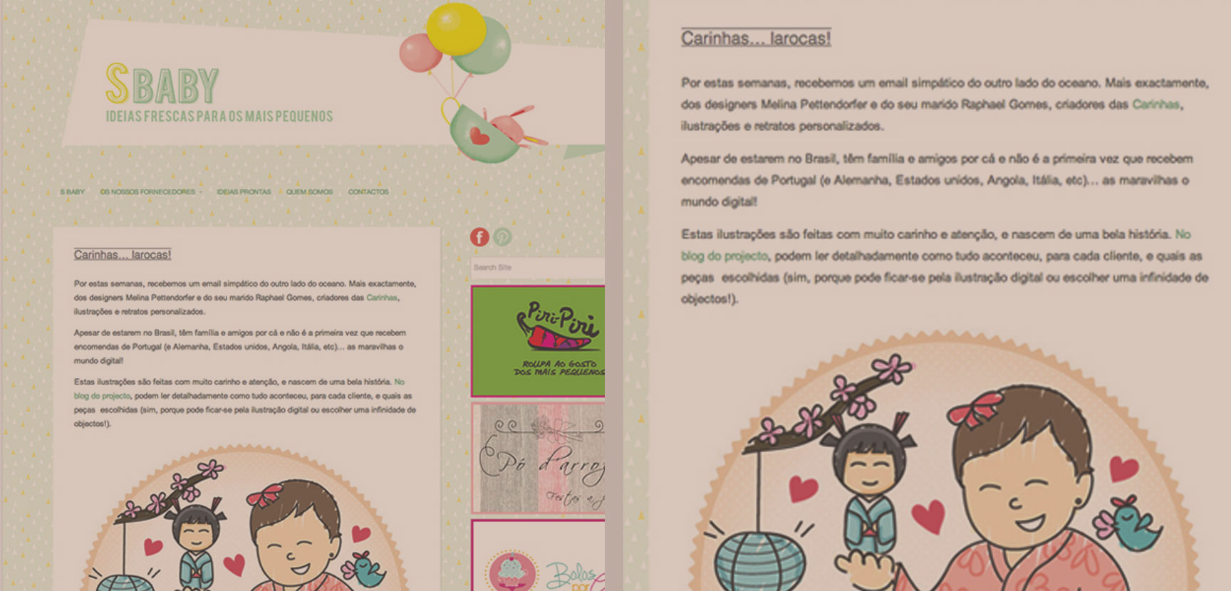 Ficamos muito felizes em ver as Carinhas sendo prestigiadas nesta terrinha que tanto nos é querida… Portugal! Foi usando uma expressão portuguesa que é puro amor – Carinhas Larocas – que a Susana, do blog Simplesmente Baby, começou a nos descrever. Em Portugal, essa expressão é usada para dizer que a pessoa tem uma cara fofinha, engraçada… tudo a ver com a gente!