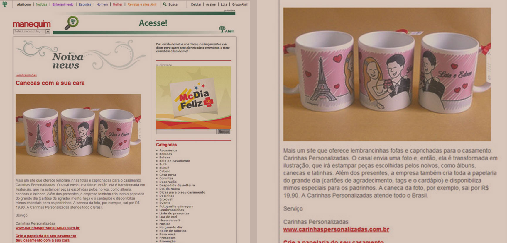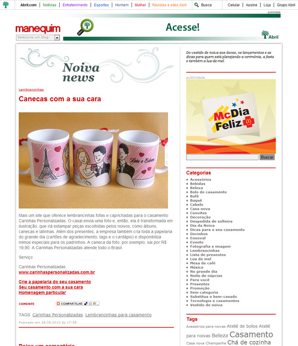 Olha que bacana aonde as Carinhas apareceram: no site da Revista Manequim Noivas, no Noiva News!