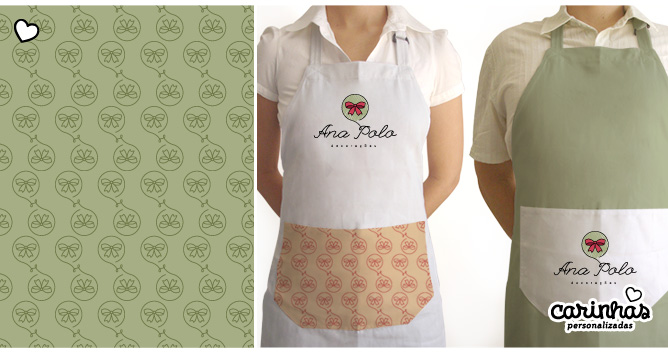 Também sugerimos uma estampa repetitiva usando o símbolo e aventais como uniformes.
