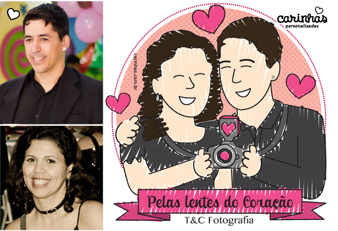 A Tatiana e o marido são fotografos e trabalham juntos (a gente se identifica!). O slogan do casal é “Pelas lentes do coração” e eles tiveram a ideia de encomendar Carinhas com os dois segurando uma máquina só, ao invés de duas, pra mostrar que o sentimento e a sintonia é grande quando estão fotografando.